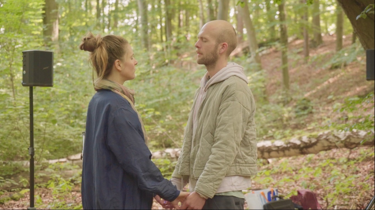 TL: Wir haben einen Raum geschaffen, um nicht länger vor dem Zustand der Welt zu fliehen, sondern ihn im Körper zu spüren und zu erforschen, wie wir dem begegnen wollen. Begleitet von der Intensität der Musik sind wir durch die Geschichte des Lebens auf der Erde gereist, hinein in verschiedene Qualitäten, in Ausdruck und Ekstase – bis zum Kollaps. Nach einem Techno-Remix von »Tanzt kaputt, was euch kaputt macht« sind wir alle zusammen gefallen. Viele sind wirklich zehn Minuten auf dem Waldboden liegen geblieben, haben die Erschöpfung, die wir alle kennen, einmal wirklich zugelassen – und sich Zeit genommen, die Impulse zu fühlen, wieder aufzustehen. Wir haben gefragt: Wie willst du den kommenden Krisen und Katastrophen begegnen? Wofür willst du einstehen?